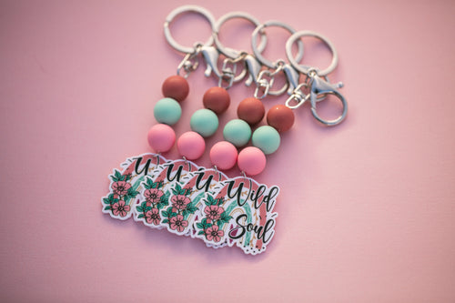 Wild Soul Silicon Bead and Planar Resin Keyring/Bag Tag